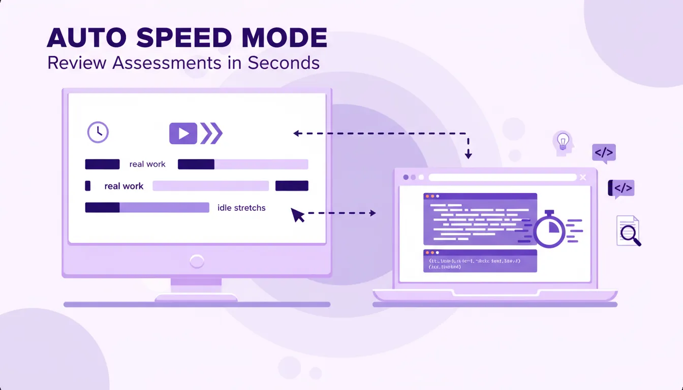 See the work, skip the wait—Auto Speed Mode accelerates review sessions by fast-forwarding idle time in VS Code and terminal tasks.